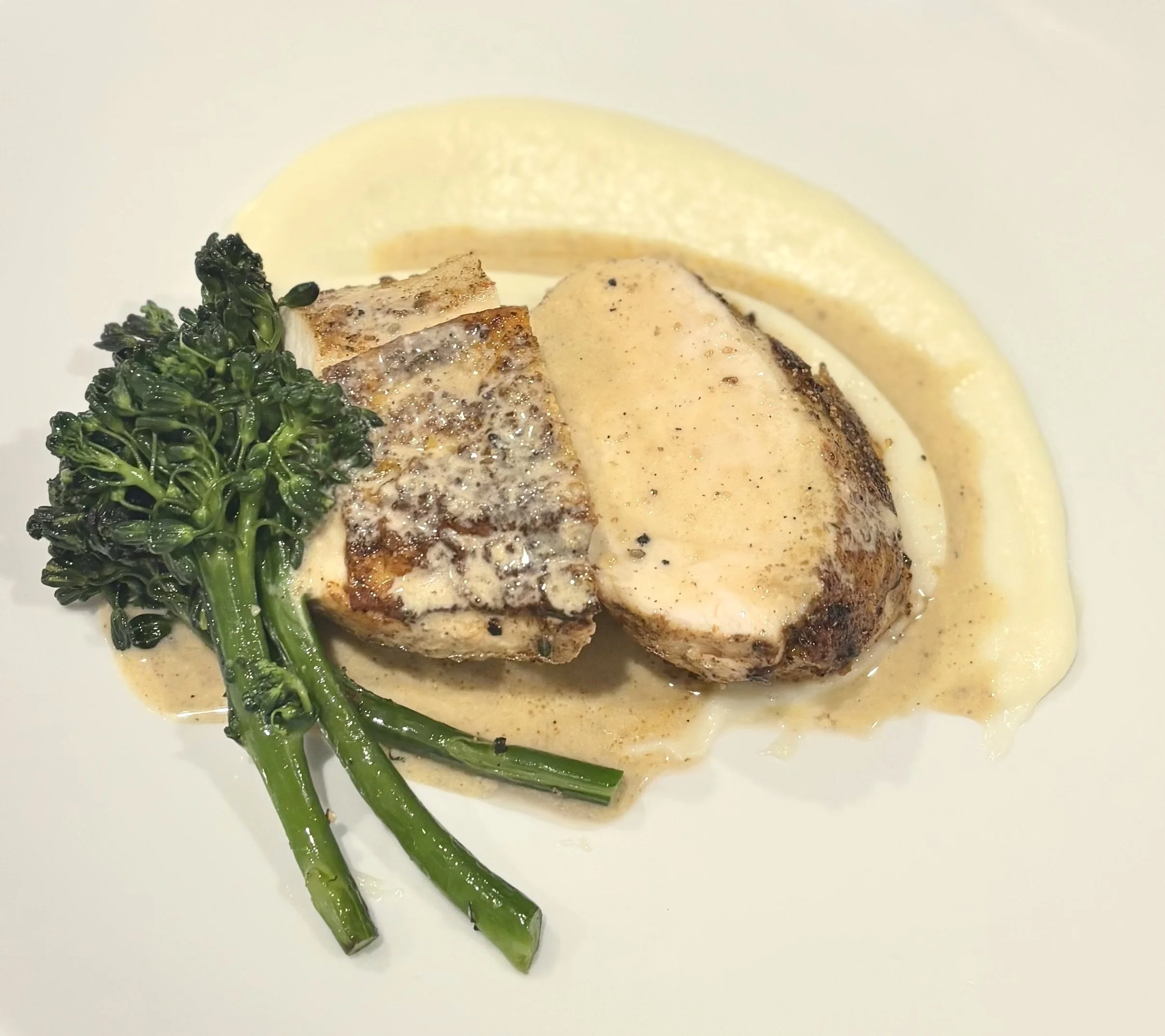 This menu is best suited for in-home dinners, private events, and fine dining experiences, featuring thoughtful courses, elevated presentation, and a more personal, hands-on approach.